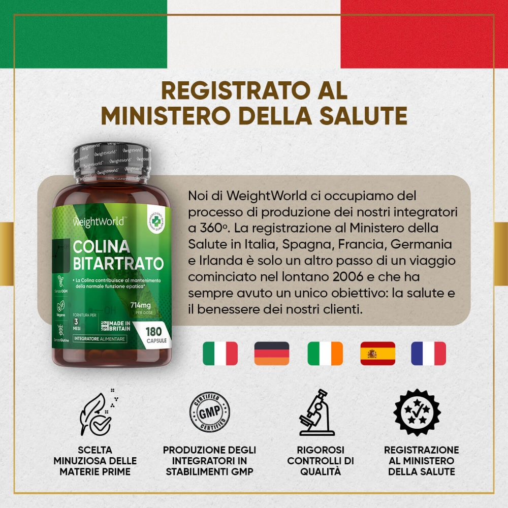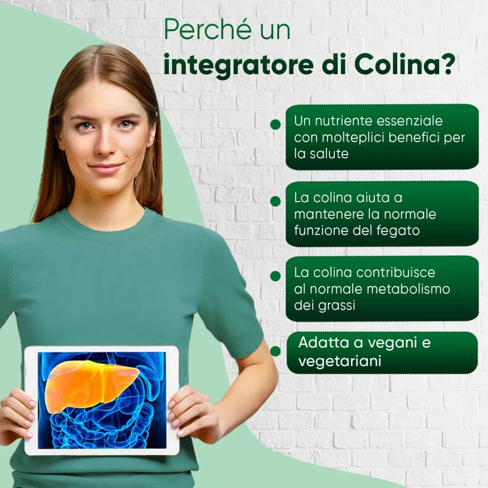 A volte l’assimilazione di alimenti contenenti la Colina da soli non bastano al giusto apporto quotidiano, ecco perché un integratore naturale è fondamentale per riequilibrare l’organismo.