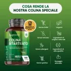 Colina Bitartrato in Capsule è un integratore naturale che aiuta il nostro corpo ad assumere le giuste quantità di questo nutriente essenziale. La comoda formulazione in 90 compresse copre un fabbisogno giornaliero di tre mesi. La sua composizione è adatta ai vegani e a chi soffre di intolleranze al glutine o al lattosio.