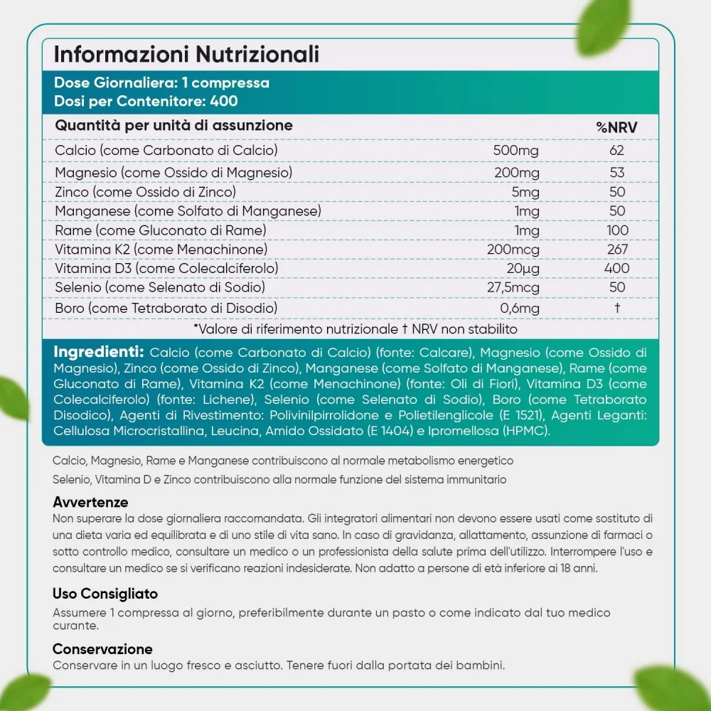- Calcio e Vitamina D3 per la salute di ossa e denti