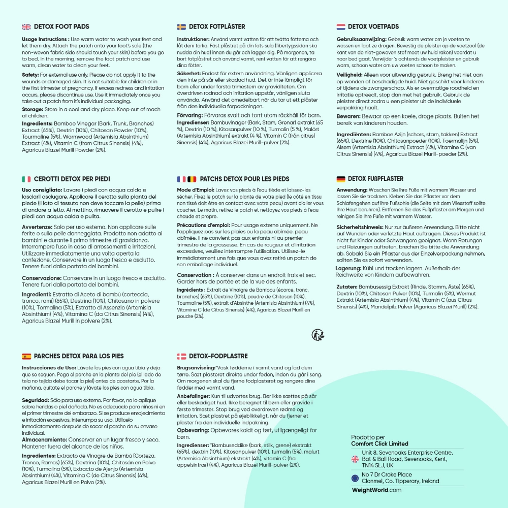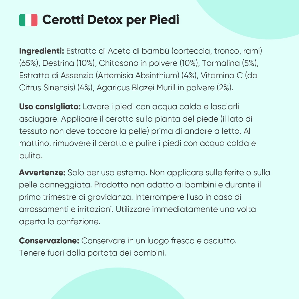 Combinando idee occidentali e orientali sulla salute e la disintossicazione, WeightWorld ha creato i Cerotti Detox Piedi, un metodo di purificazione dell’organismo davvero unico nel suo genere! Basati su un sistema innovativo ispirato all'agopuntura, alla riflessologia e alla detossificazione, questi cerotti utilizzano i loro ingredienti naturali per contribuire all’espulsione delle tossine e delle impurità attraverso le piante dei piedi.