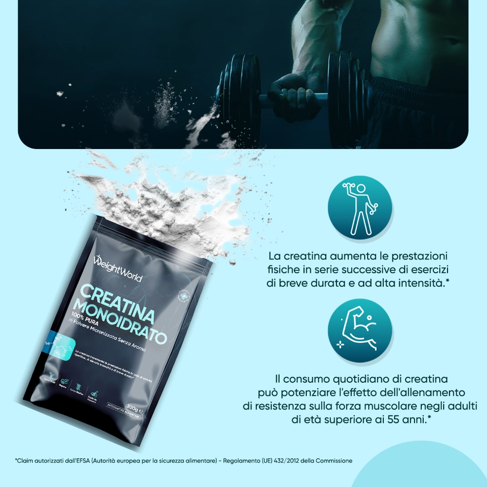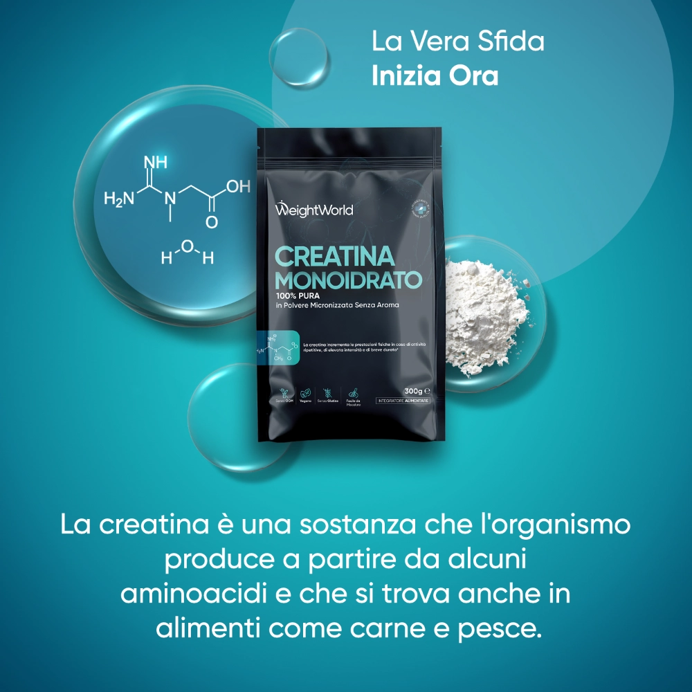 Secondo l'Autorità Europea per la Sicurezza Alimentare, la creatina aumenta le prestazioni fisiche in serie successive di esercizi a breve termine e ad alta intensità, dimostrandosi quindi un alleato perfetto per gli atleti e gli appassionati di fitness! Poiché la produzione naturale di creatina del tuo corpo diminuisce con l'età, la nostra polvere di creatina monoidrato ti aiuta a rimanere al top della tua forma fisica, indipendentemente dalla tua età.