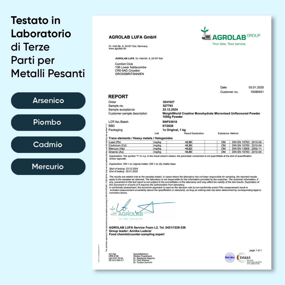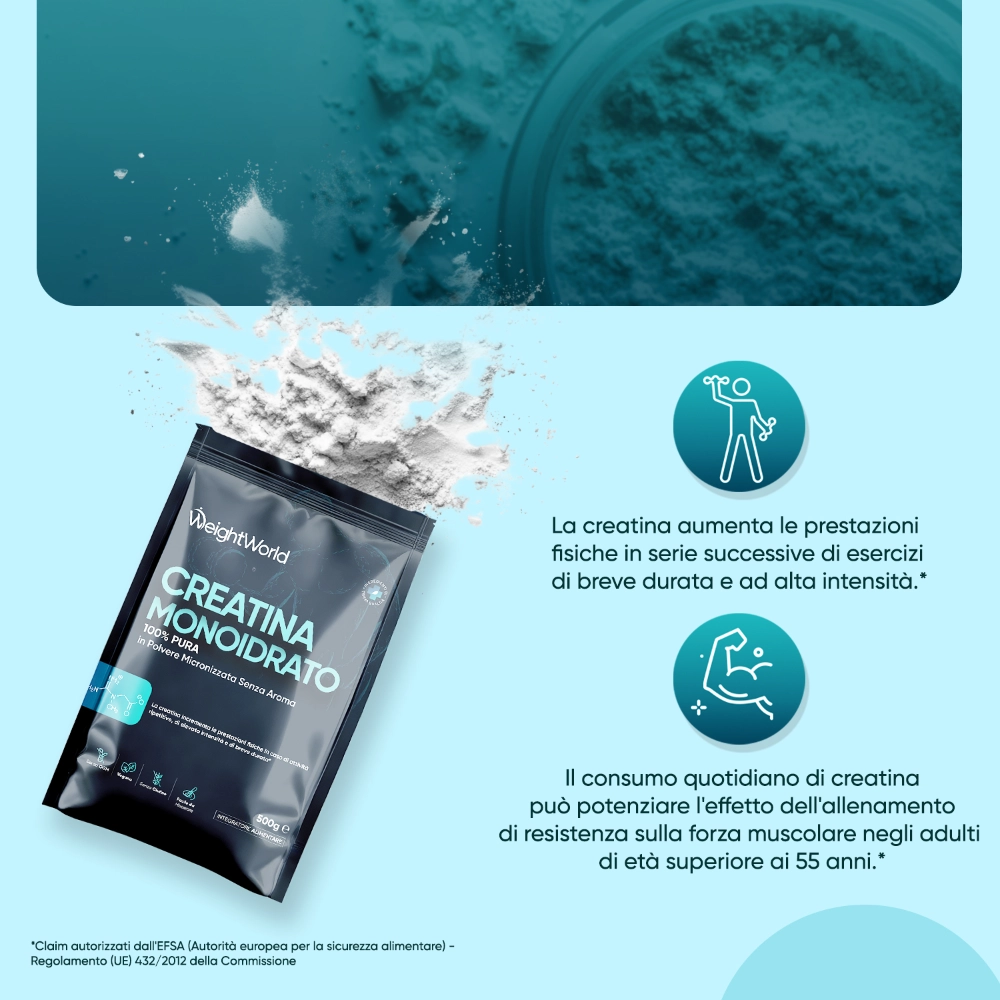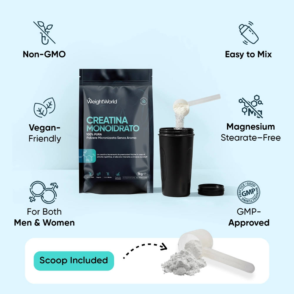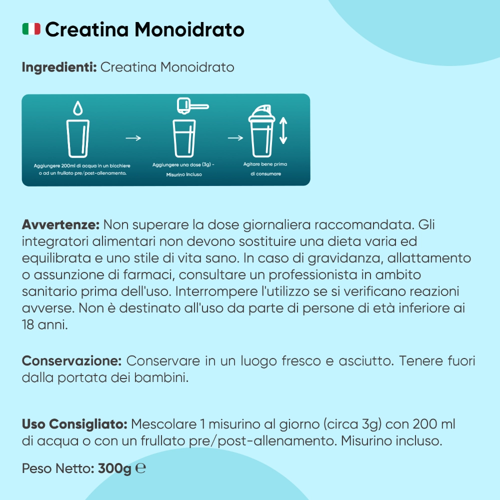 - Contiene creatina pura al 100% senza OGM o additivi artificiali