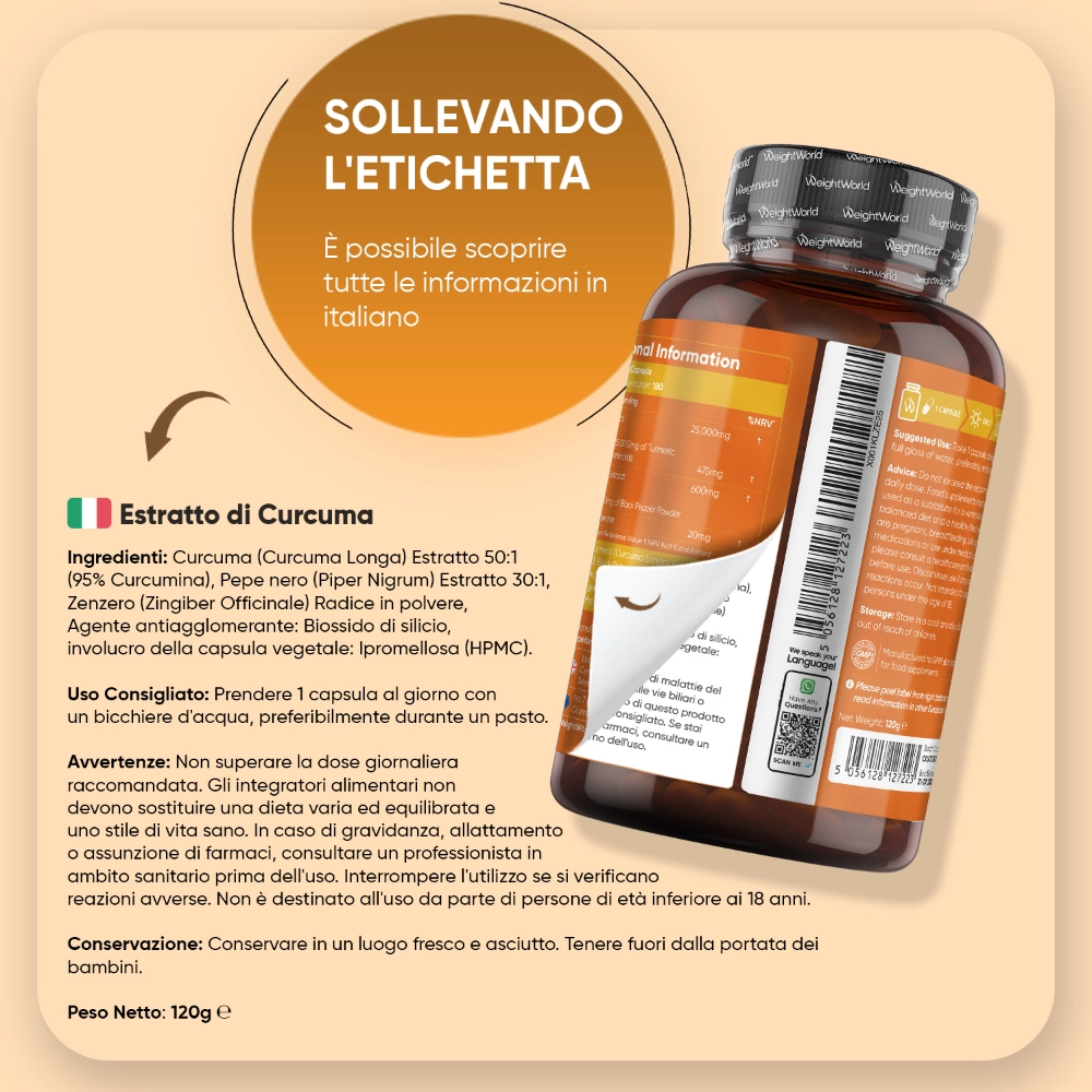 - 500 mg di Curcuma titolata al 95% in curcuminoidi
