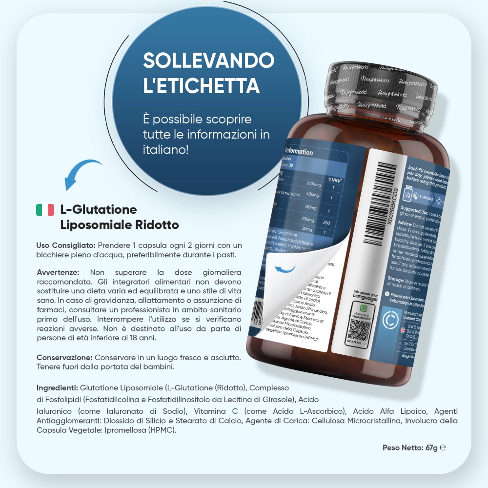 - 1000mg di Glutatione Attivo Puro