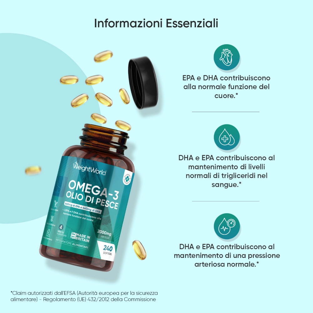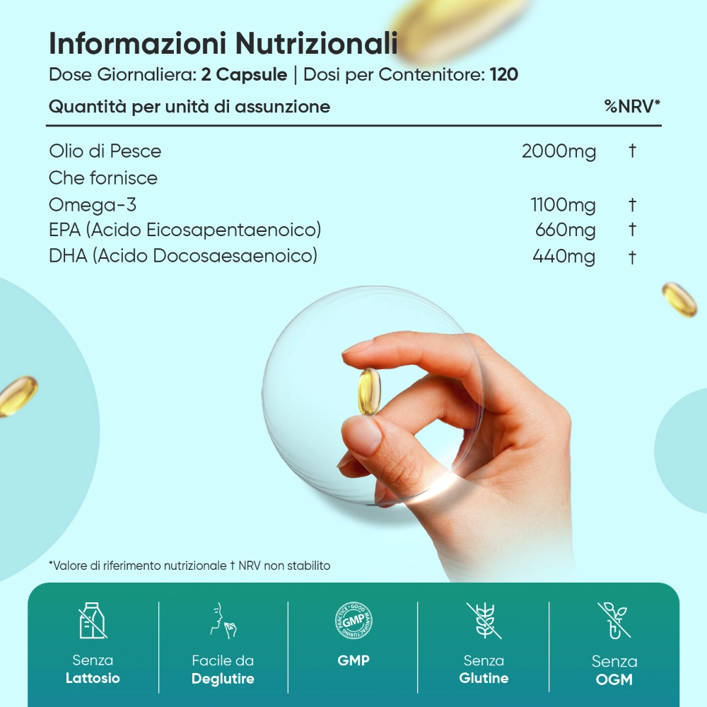 - Omega-3 da 2000 mg per dose