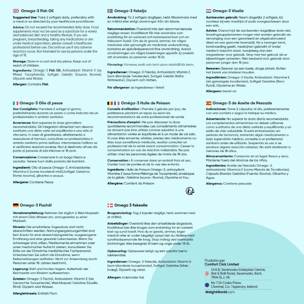 L’Omega 3 è una parte essenziale di una dieta sana in quanto gestisce le normali funzioni cerebrali, oculari e cardiache. Per questo motivo, rappresenta anche un modo eccellente per dare al tuo stile di vita attivo una spinta naturale e rafforzare i tuoi sforzi di fitness. Con una regolare integrazione, l'olio di pesce Omega 3 può aiutare il tuo corpo a prendersi cura di: