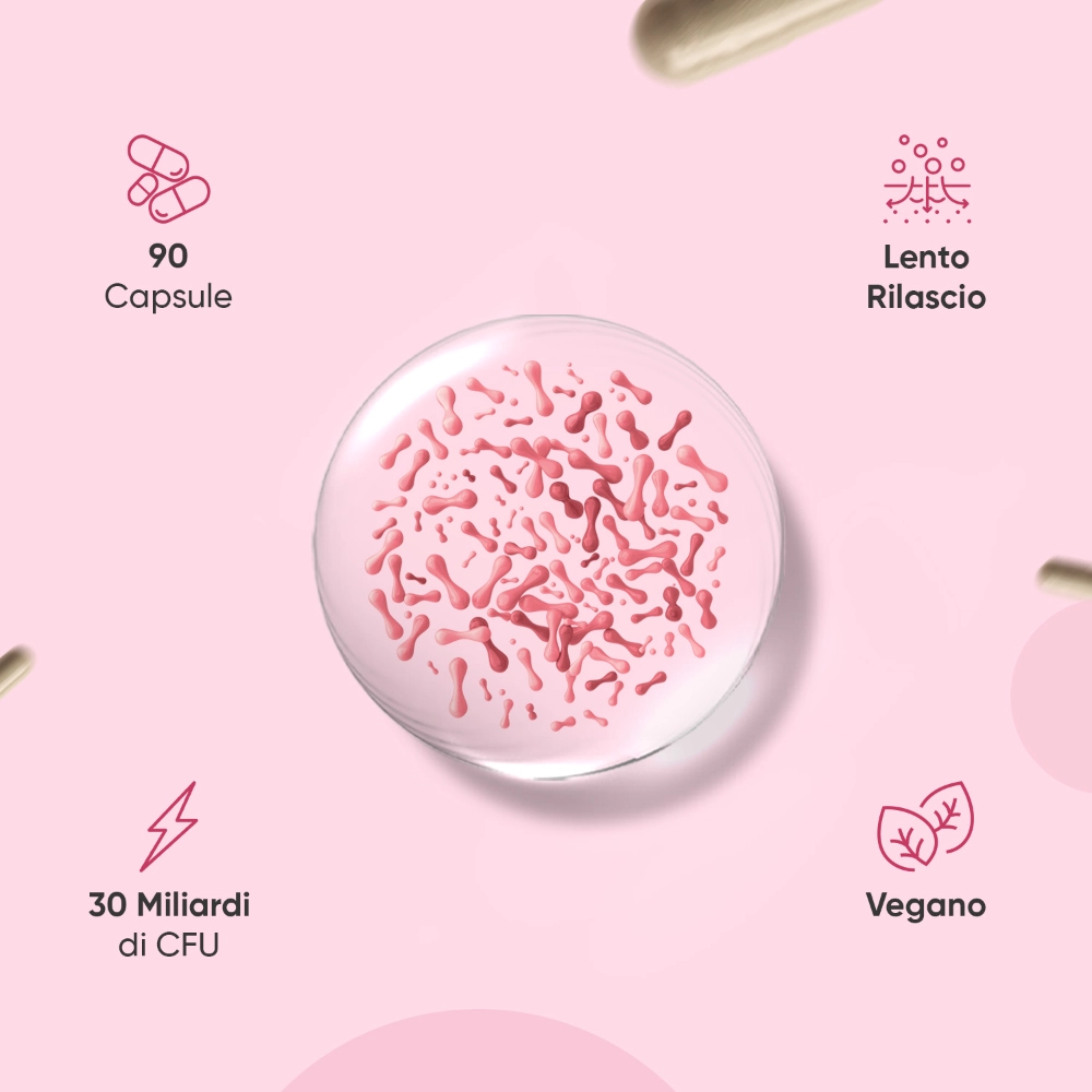 - 30 miliardi CFU (Unità Formanti Colonia) da 5 ceppi probiotici selezionati