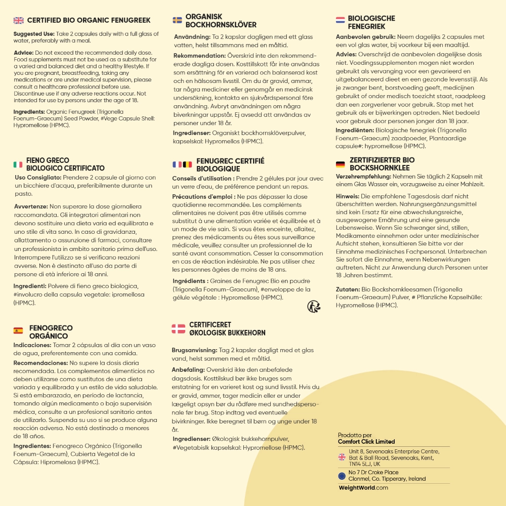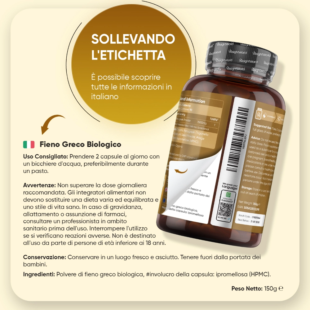 Con così tanti incredibili benefici legati a questa pianta e ai suoi semi, non può sorprendere che le aziende di tutto il mondo si stiano interessando - ma WeightWorld voleva andare oltre! Evitando le aggiunte di additivi a base di lattosio, che possono escludere i vegani e quelli con intolleranze a godere dei benefici di molti superfood, abbiamo optato per un approccio totalmente vegetariano, usando l’erba intera di fieno greco, in modo da poter raccogliere i benefici associati a ciascuna parte della pianta. Se vuoi goderti questa incredibile pianta profumata, non c'è scelta migliore del fieno greco biologico al 100%!