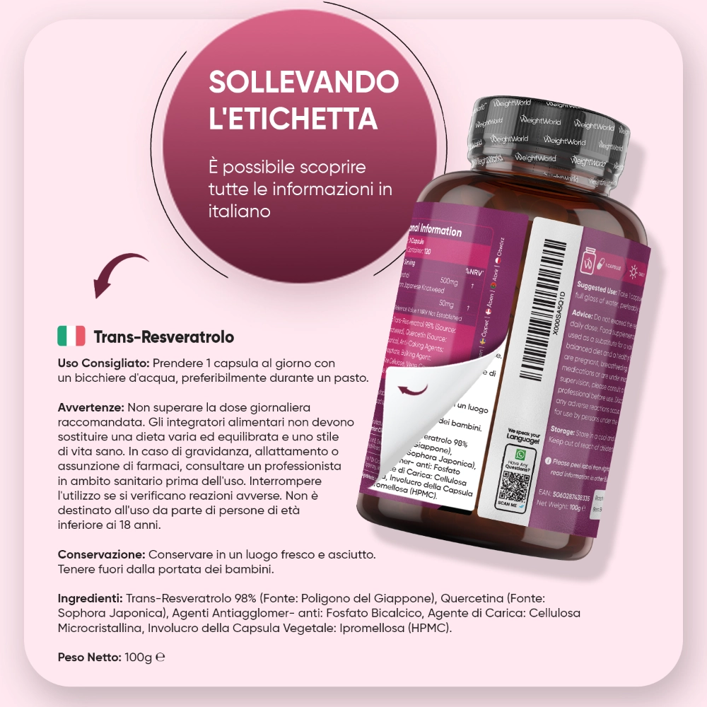 Puoi trovare la lista completa degli ingredienti di Resveratrol nella tab "Ingredienti".