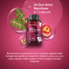 Questo integratore alimentare è la scelta perfetta per chi cerca capsule ad alto dosaggio di Resveratrolo con Estratto di Vino Rosso ed è ideale per coloro che vogliono supportare il sistema immunitario, contrastare i segni dell’invecchiamento, supportare il sistema cardiovascolare, rinforzando le pareti venose e riducendo il colesterolo in eccesso, e gestire il peso in modo naturale.