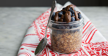 Zuppa d’avena (porridge) con mirtilli e cacao