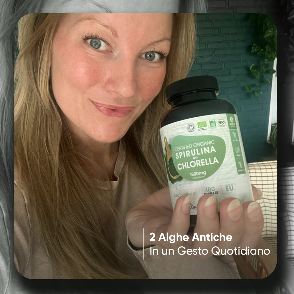 L'alga blu-verde è una pianta acquatica che le culture antiche hanno usato per secoli. Con i nutrienti e le condizioni adeguate, può trasformarsi in una ricca fonte di benefici per la salute. La combinazione di Spirulina e Clorella favorisce una sinergia che aiuta a: