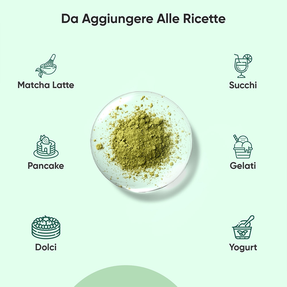 - Aggiungi la polvere di Tè Verde Matcha a un frullato o a un succo di tua scelta per un boost di energia rinfrescante.