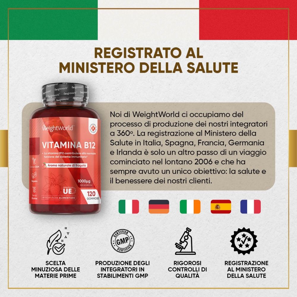 - Formula da 1000µg di Vitamina B12 al giorno