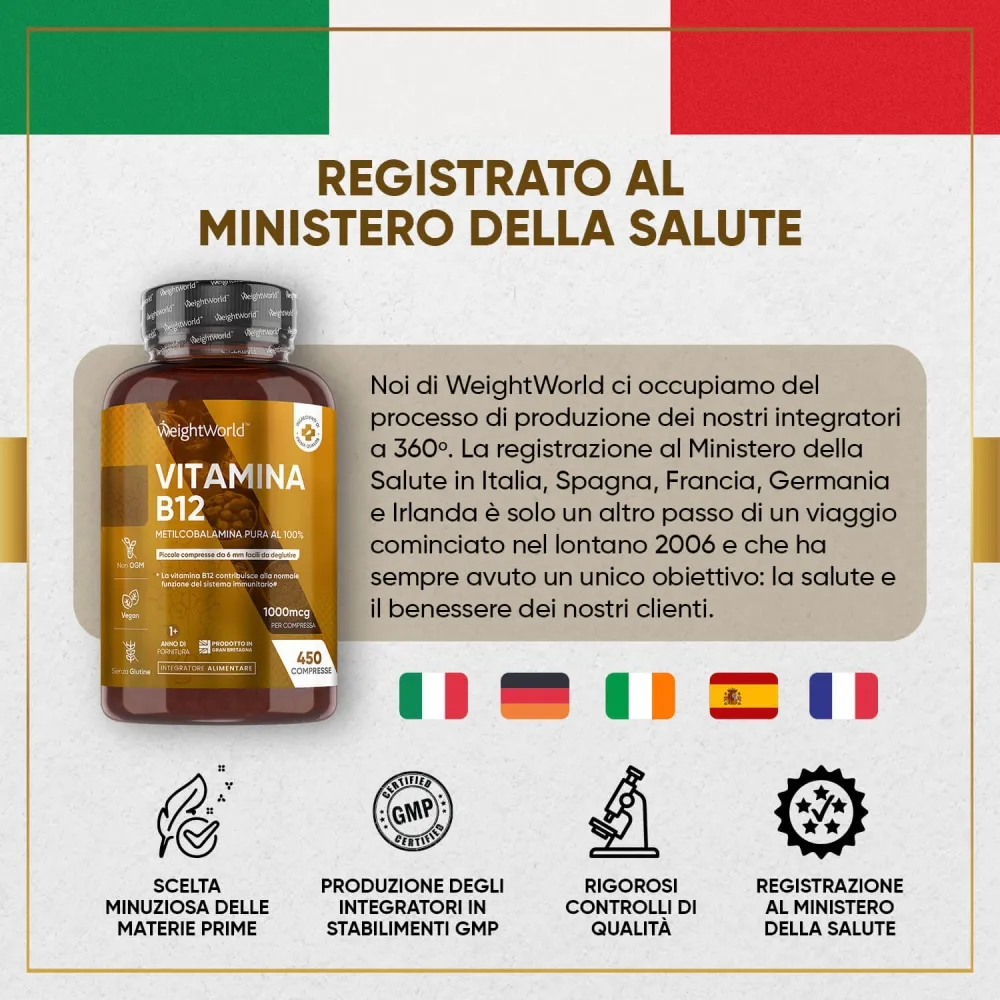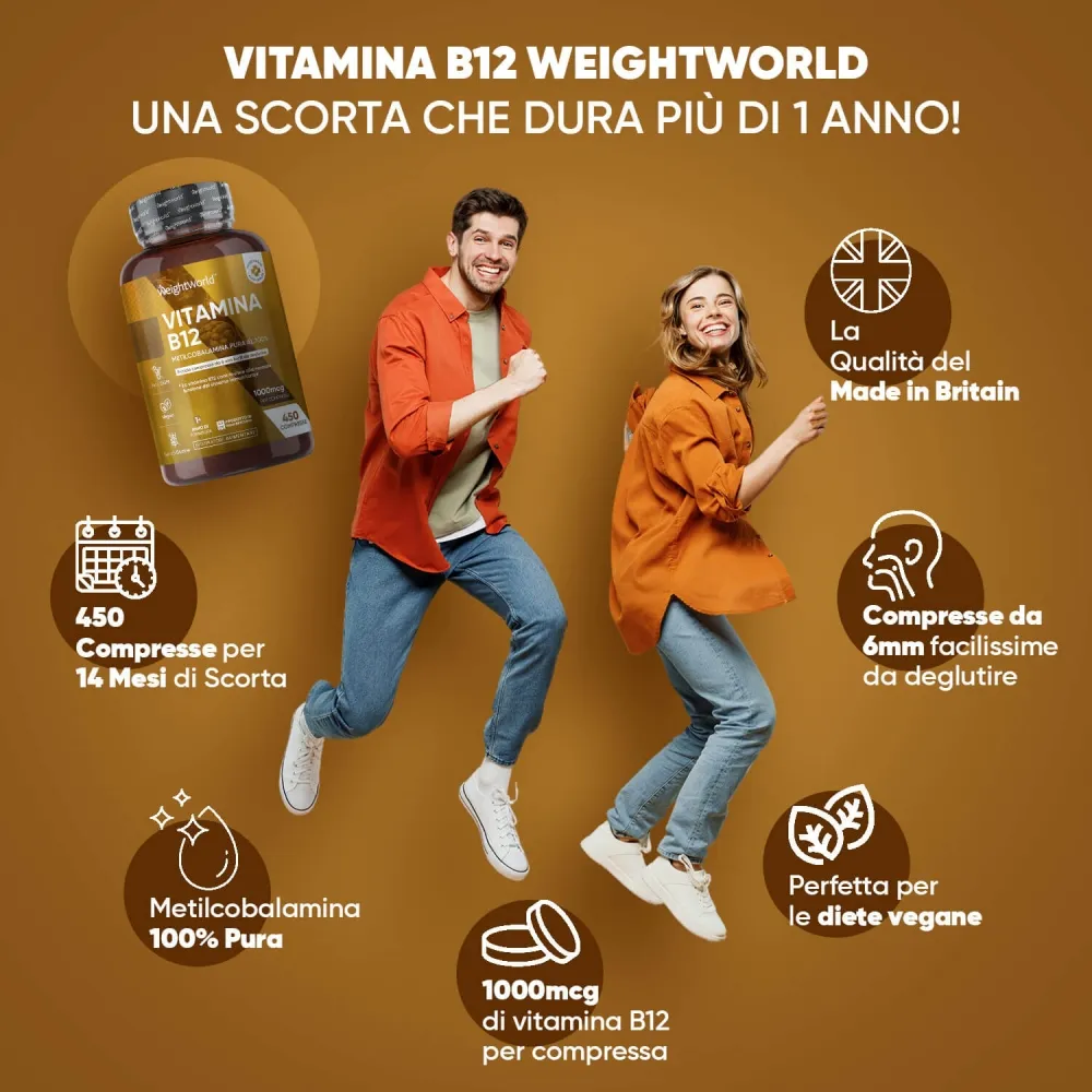 Inoltre ogni confezione di Vitamina B12 WeightWorld contiene 450 compresse per oltre un anno di utilizzo. Approfittane ora!