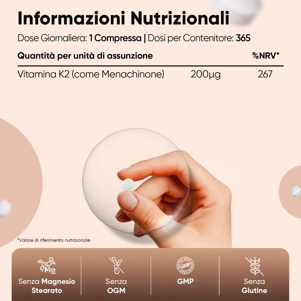 200 mcg 365 compresse | Integratore di Vitamina K2 pura per adulti