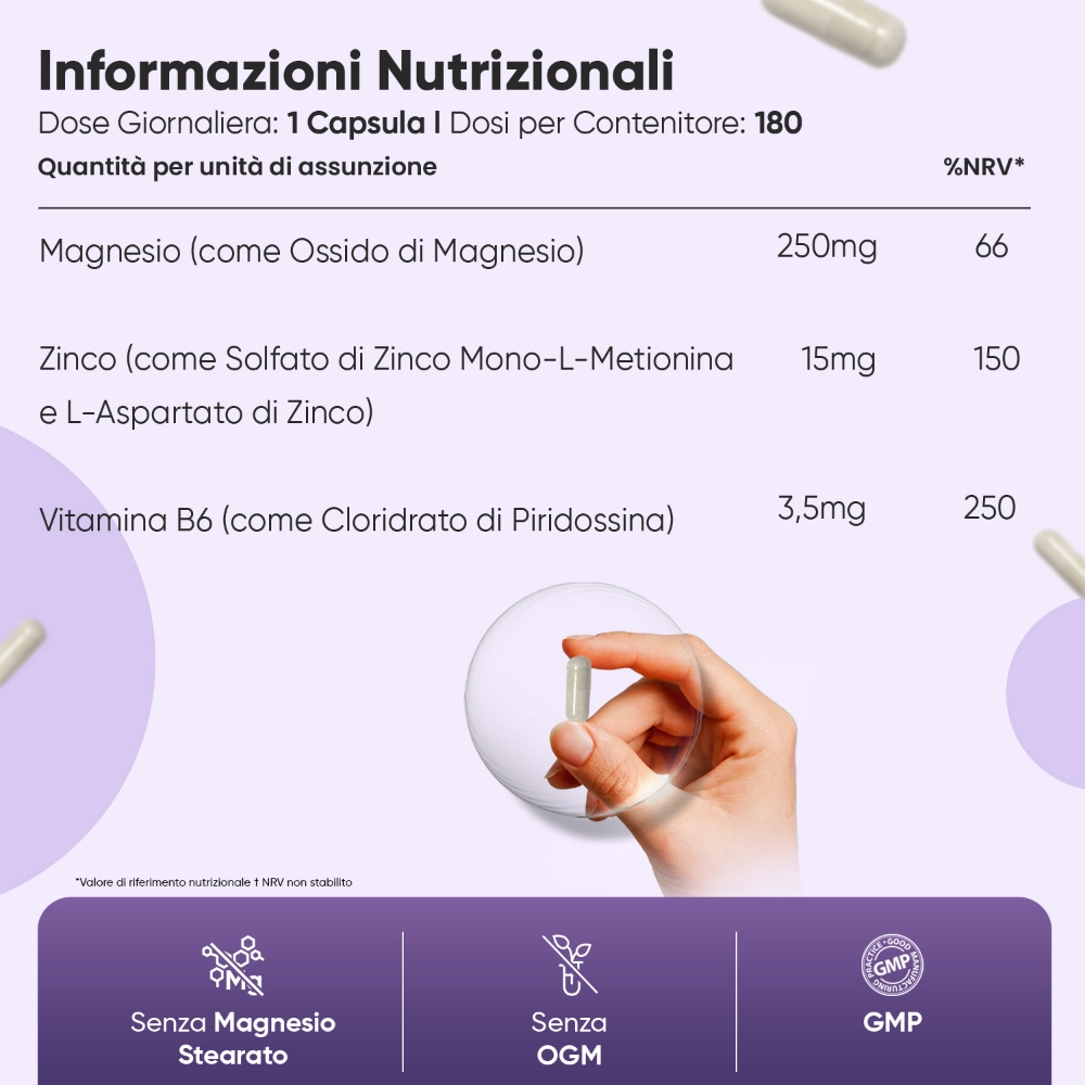 Nota per il suo effetto calmante sull'umore e sulla mente, la vitamina B6 è inclusa anche nel nostro integratore ZMA in quanto contribuisce a:
